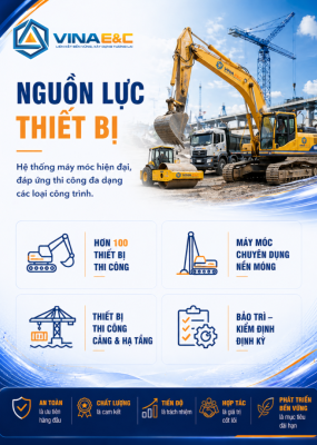 Xem thêmVINA E&C đẩy mạnh thi công Gói thầu số 24 trị giá gần 139 tỷ đồng tại Cửa khẩu Quốc tế Thường Phước – Mộc Rá. Dự án trọng điểm bao gồm hạ tầng giao thông, hệ thống điện và xử lý nền đất yếu chuyên sâu.