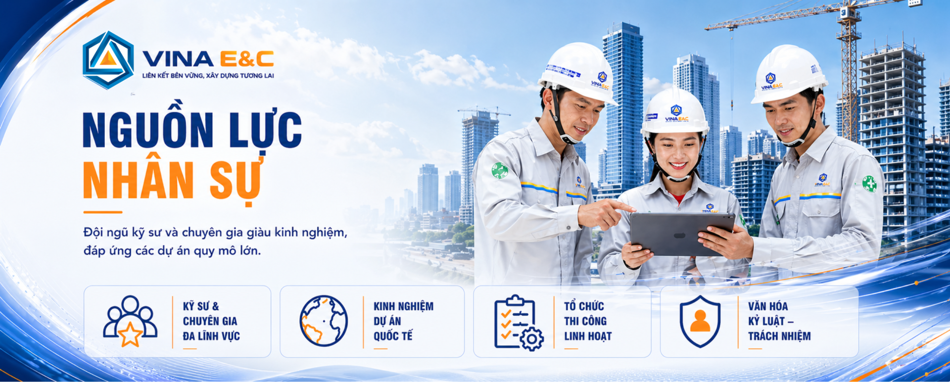 VINA E&C sở hữu đội ngũ nhân sự có kinh nghiệm thực tiễn cao trong ngành xây dựng: